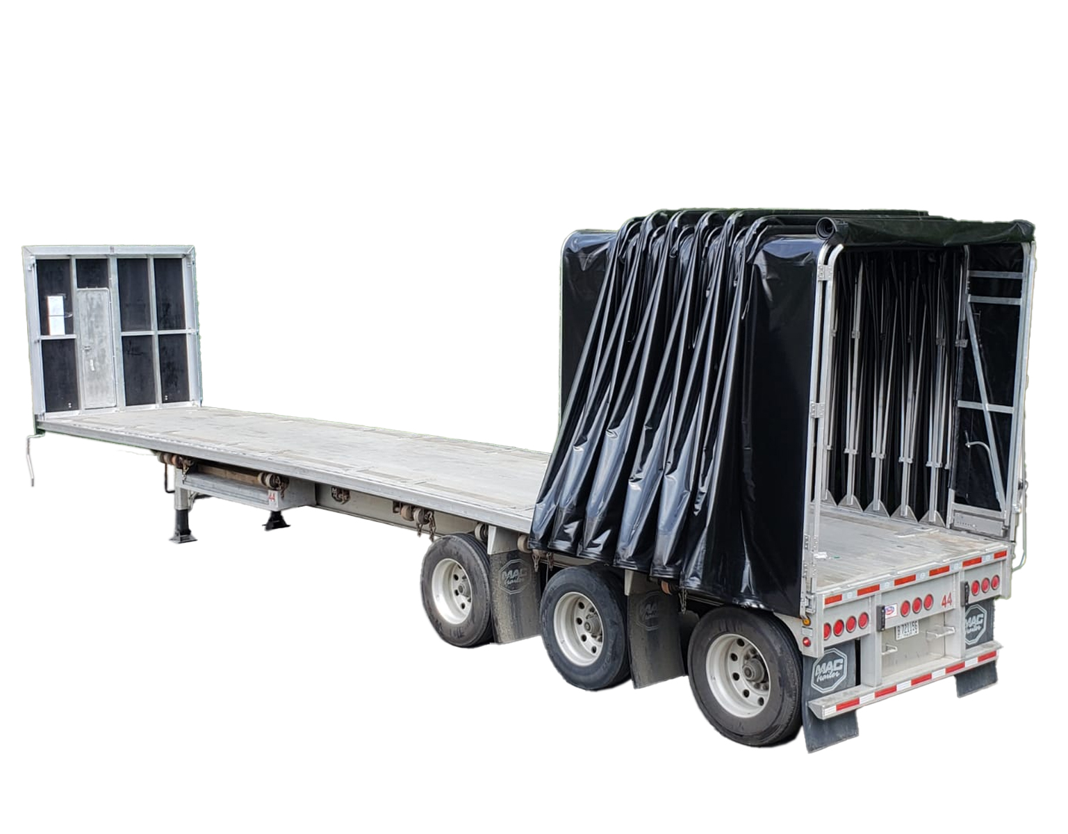 At its core, the system allows you to load and unload like a standard flatbed, then quickly enclose the load with a rolling tarp structure. This eliminates the need to climb on the deck or handle loose tarps, while still maintaining flexibility for different types of freight.