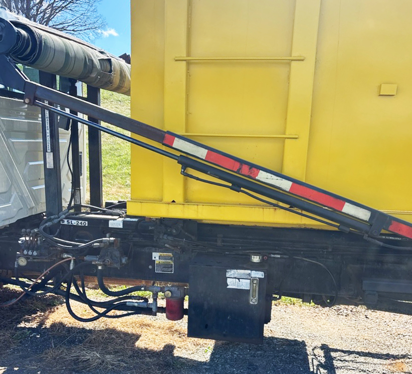 The HR4752 Hydraulic Cylinder controls the arm extensions on the Rack N Pinon RP4500SARG tarp system. The flat bottom 36" stroke hydraulic cylinder allows for the tarp arms to move back and forth, covering and uncovering the load. Welded support brackets hold the hydraulic hose neatly in place.