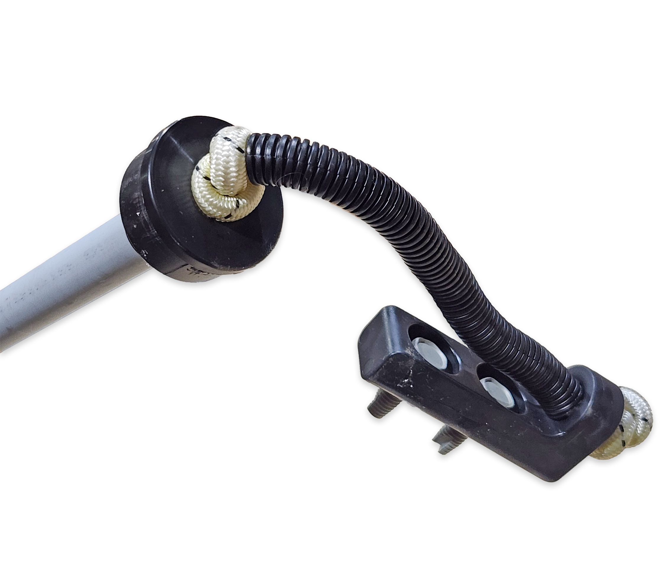 The bungee tarp return kit includes 12' of Bungee Return Cord and two segments of 60" x 1/2" Schedule 40 PVC pipe, which fit together to form a 10' tube that is inserted into your 2" roll tube. This bungee return kit comes with an industrial-grade black polymer Return Guide that mounts with two included 3/8" x 1" self-tapping bolts, providing a sturdier hold compared to the hook-screw design that other return kits use.