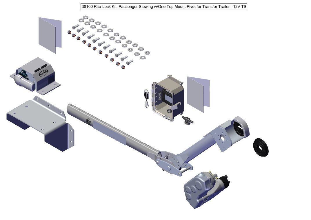 38100 Roll-Rite (OEM) Rite-Lock Power Arm Kit, Pass. Stowing w/One Top Mount Pivot for END DUMP Trailer NO Wire - 12V TS
