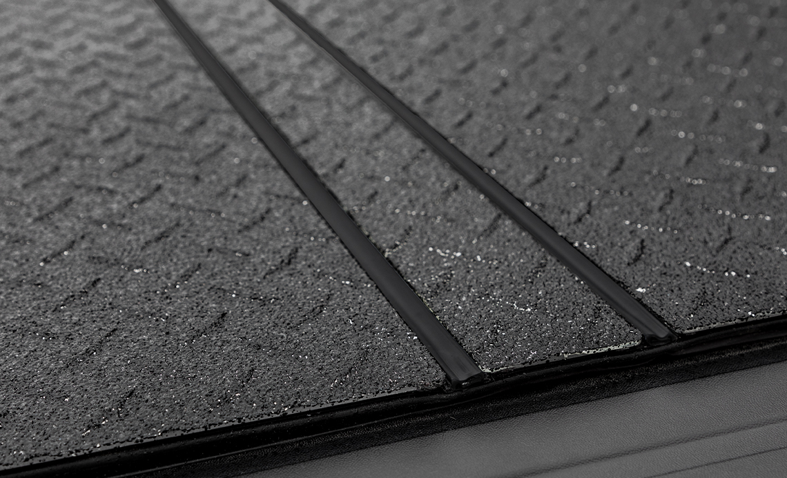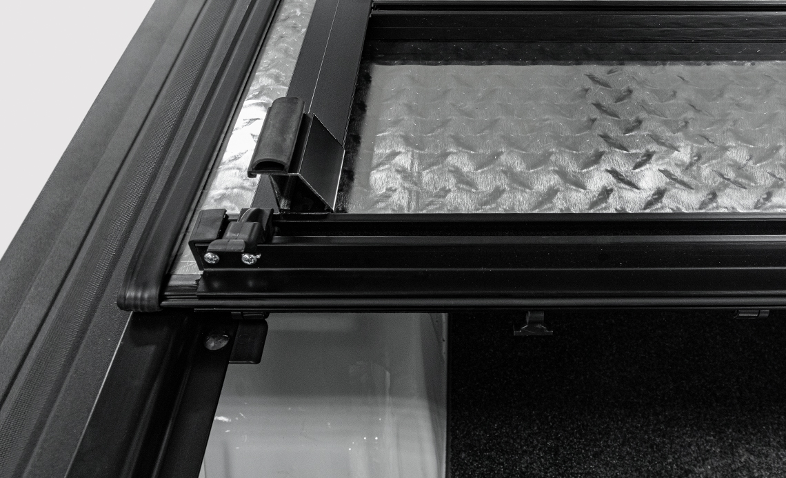 Strong panels with durable, watertight hinges are available in multiple finishes to perfectly complement your truck and OEM bed caps. Extruded aluminum channels under the panels keep the hard truck bed cover rigid while reducing weight.