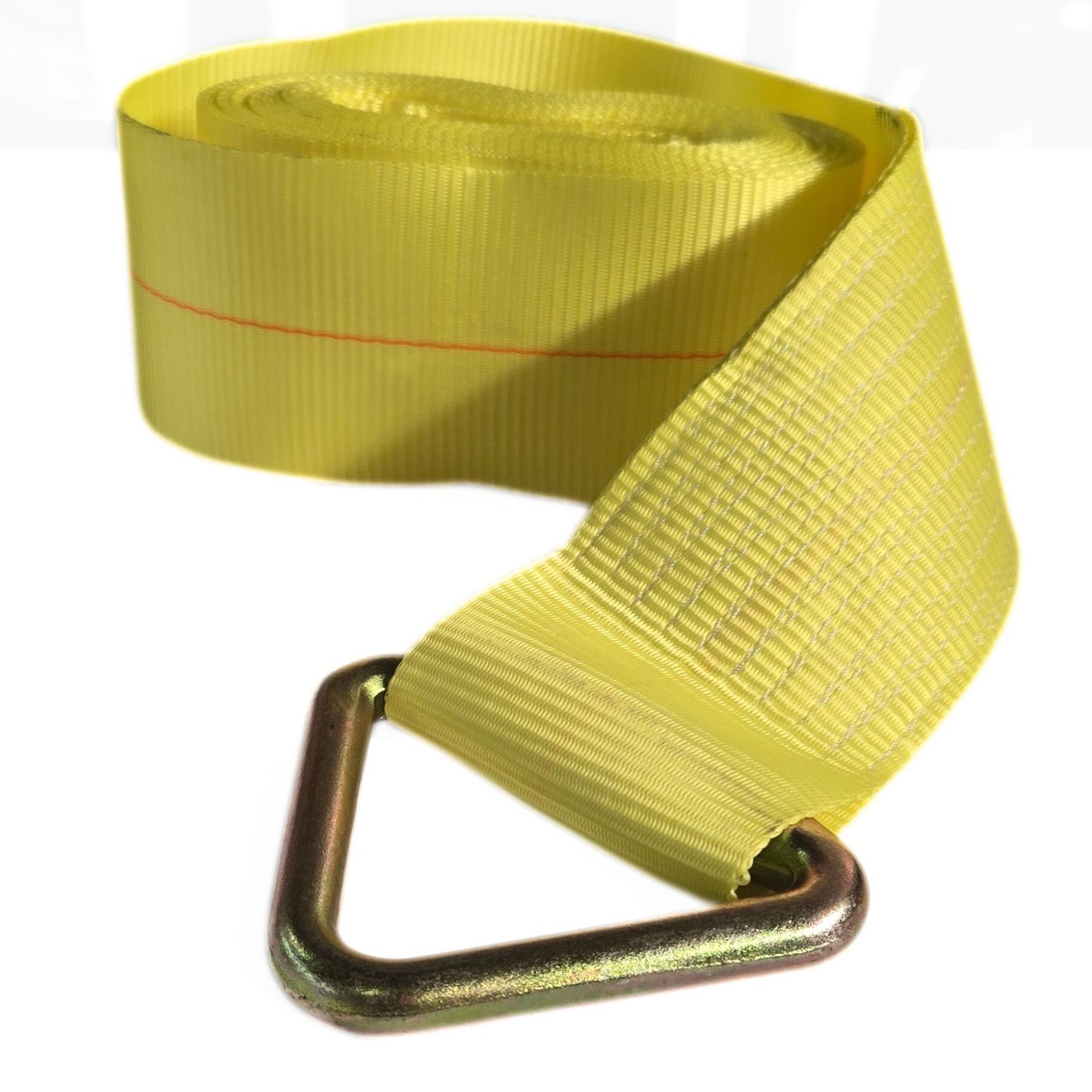 Unlike traditional winch straps, the Delta Ring design provides additional flexibility in securing loads, especially when dealing with unconventional or irregularly shaped cargo. The ring allows for various attachment points, making it easier to customize your securement setup for different types of loads. Whether you're transporting heavy machinery, large pipes, or bulky crates, this strap is engineered to handle the job with ease.