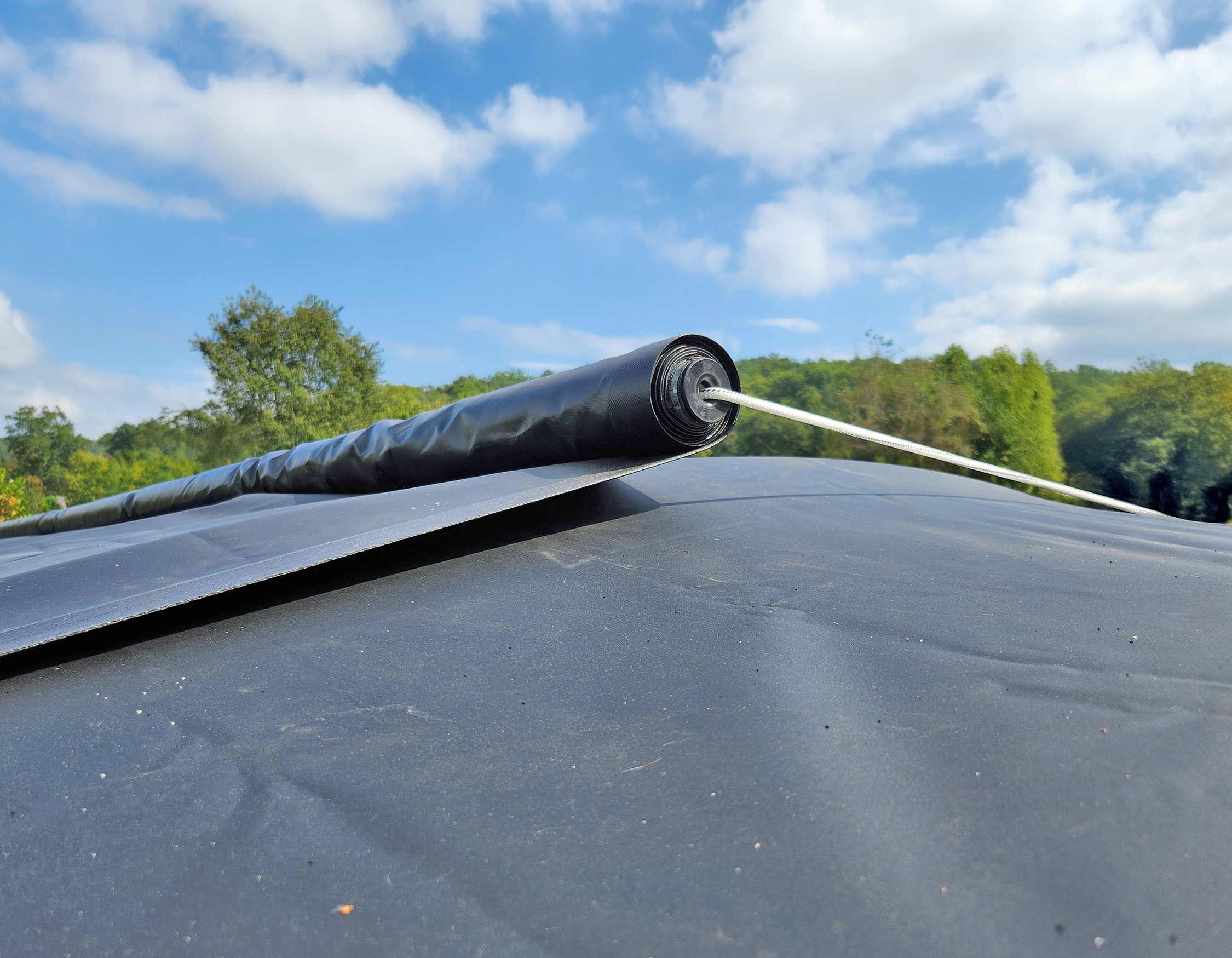 A bungee tarp return kit assists with rolling your side roll trailer tarp to the closed position with a positive return tension. A bungee cord extended through a PVC pipe maintains tension, with knots on either end of the PVC pipe setting the desired tension. The end of the remaining exposed bungee cord is fastened to the side of your trailer, helping to keep the tarp aligned as it rolls and unrolls. When you roll up the tarp to open the trailer, the bungee tension is increased so that when you go to unroll the tarp and close the trailer, the tension stored in the bungee helps pulled the tube to the closed position. Without some kind of assist, it is likely the tarp will deploy unevenly. Note: Bungee and PVC pipe do NOT need to extend the entire length of the roll tube.