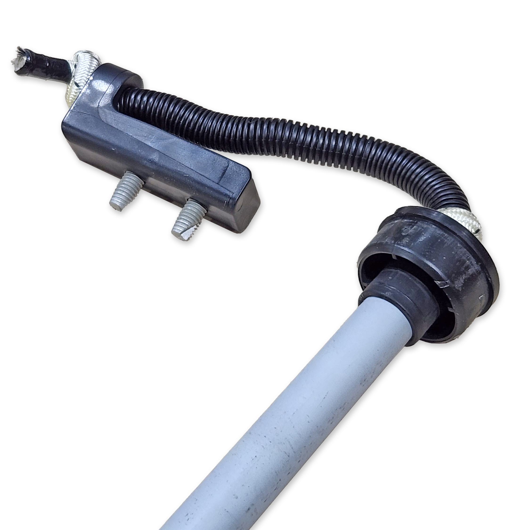 The bungee tarp return kit includes 12' of Bungee Return Cord and two segments of 60" x 1/2" Schedule 40 PVC pipe, which fit together to form a 10' tube that is inserted into your 2" roll tube. This bungee return kit comes with an industrial-grade black polymer Return Guide that mounts with two included 3/8" x 1" self-tapping bolts, providing a sturdier hold compared to the hook-screw design that other return kits use.
